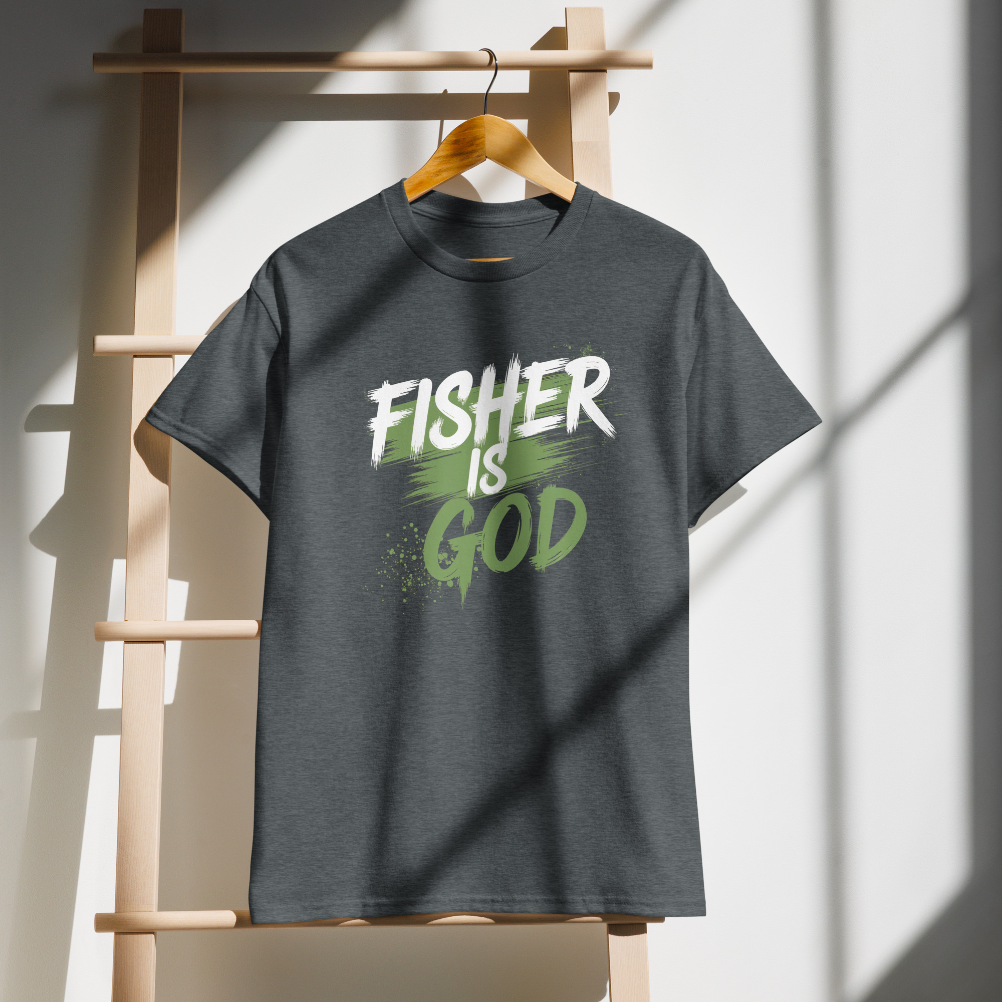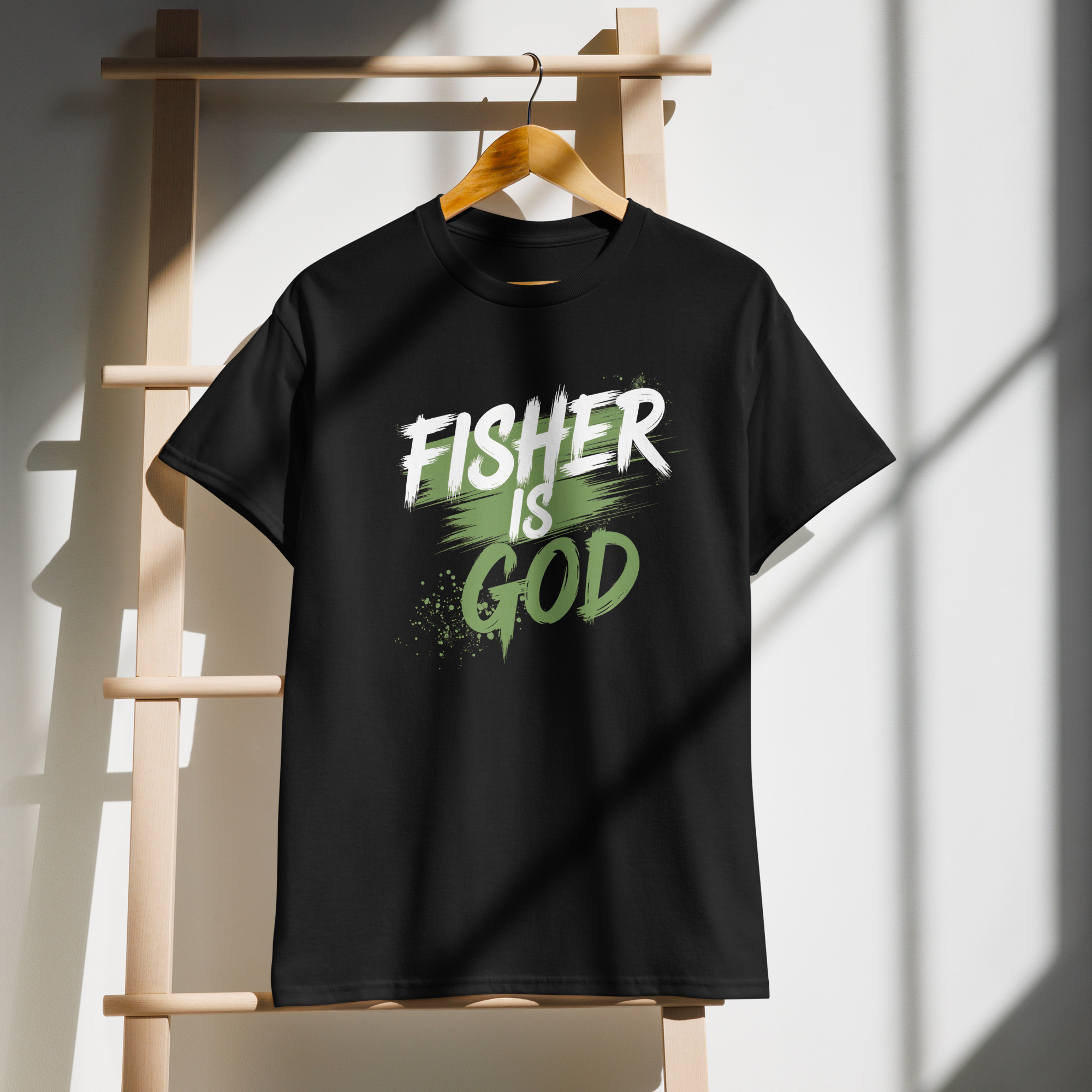 Pay homage to the unsung deity of dirt with the “Fisher Is God (Splatterpaint)” tee! This isn’t just a shirt; it’s a wearable testament to the legend who dared to take a Schwinn Excelsior where no Schwinn Excelsior had gone before.
