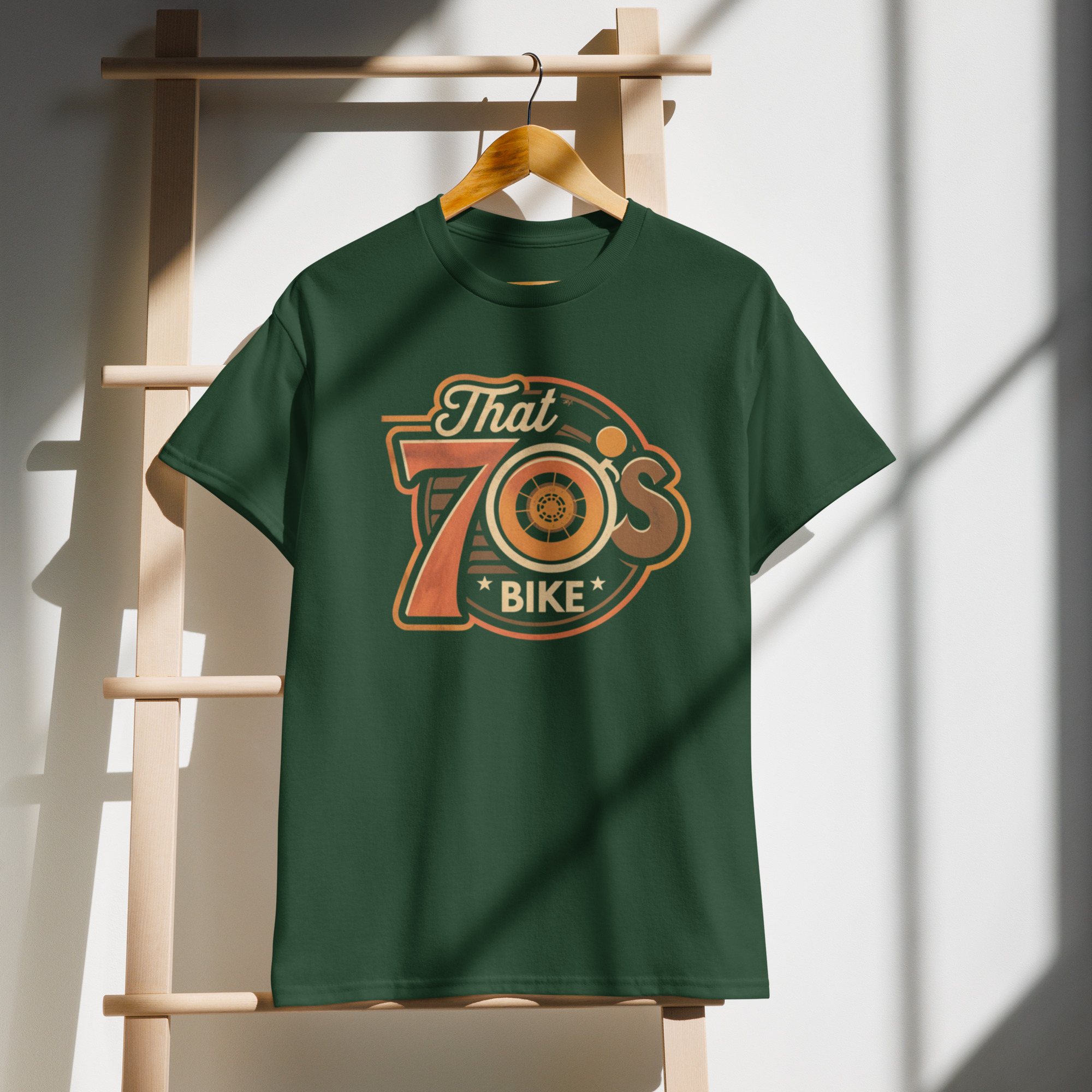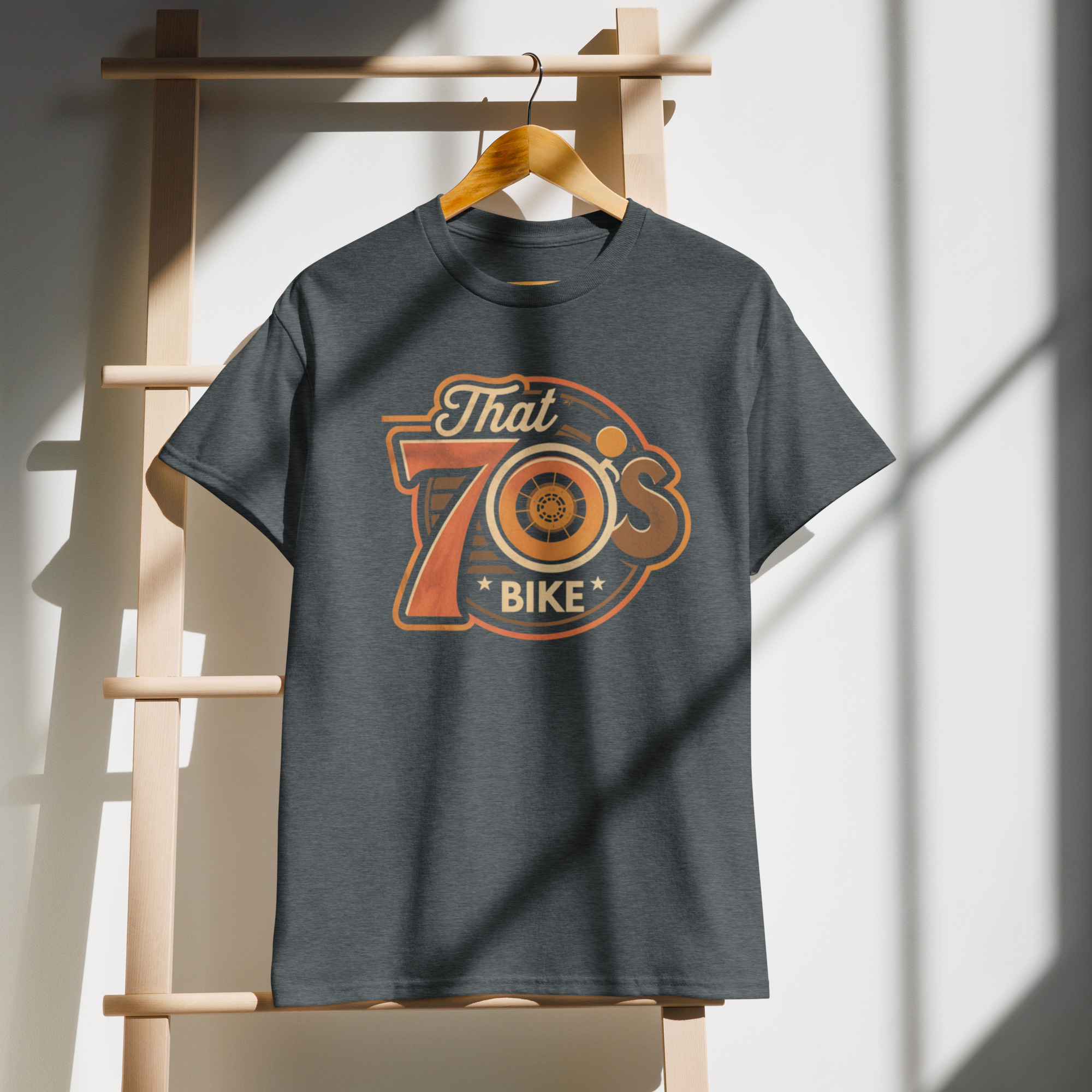 Groovy, baby! Introducing the That ’70s Bike tee, a righteous tribute to the golden age of klunking. This ain’t your average disco-era duds; it’s a super comfy cotton-poly blend shirt that’ll have you saying “Far out!” with every wear.